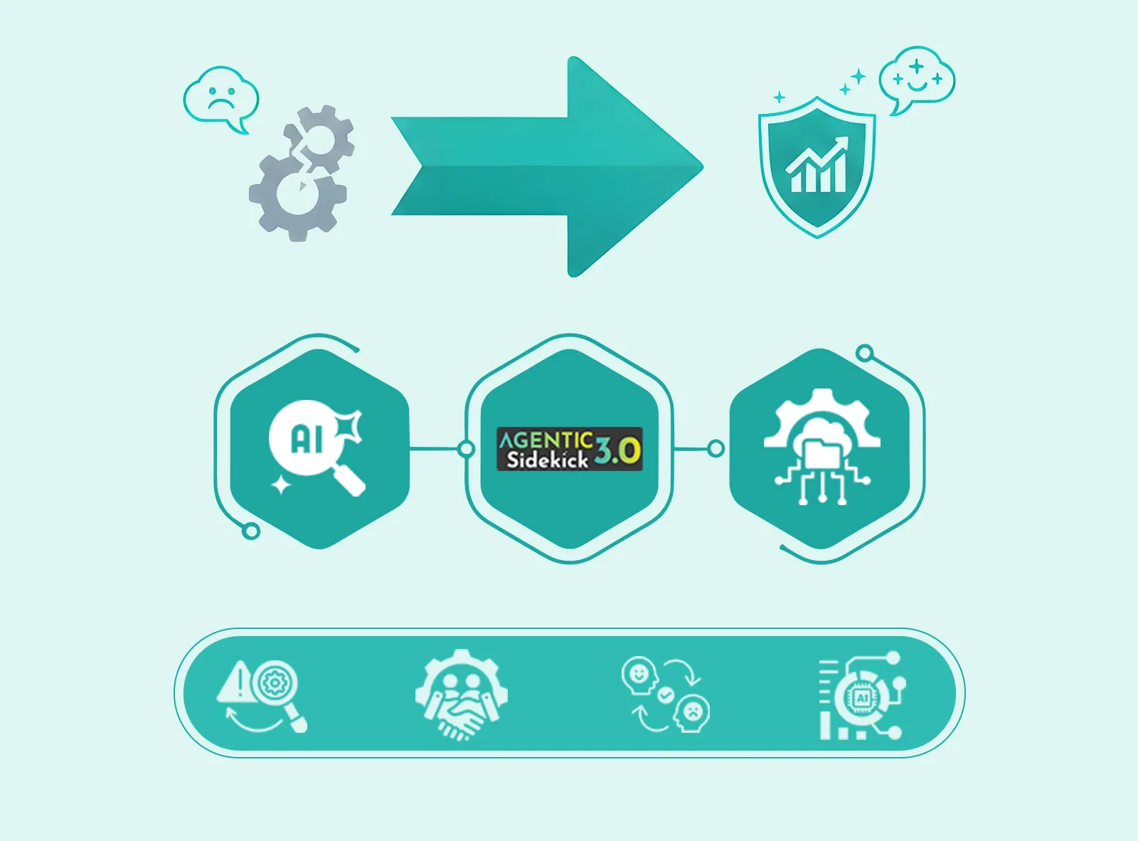 By combining SearchIQ, Sidekick, and AITSM, Rezolve.ai helps contact centers.
