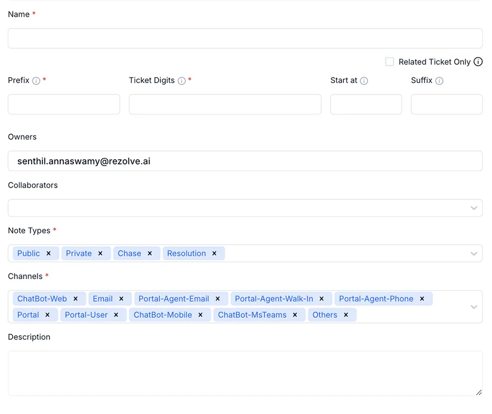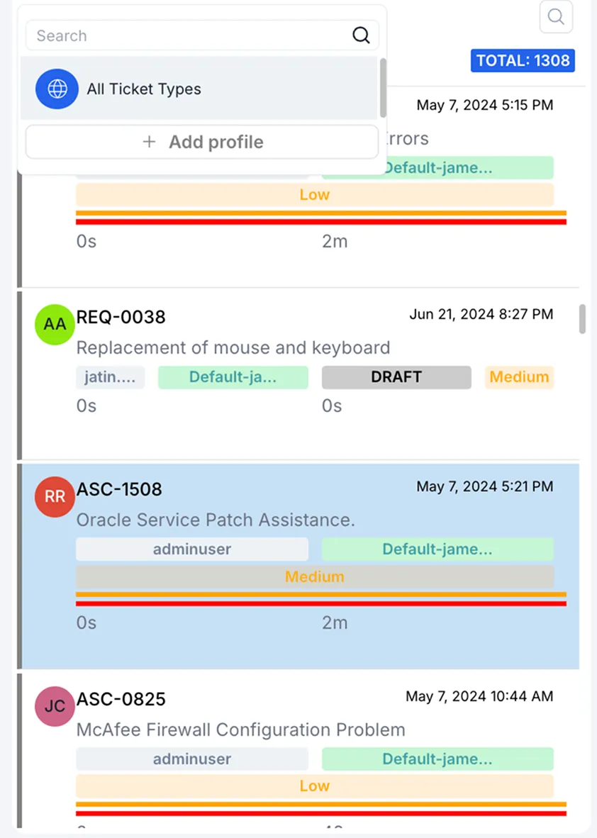 While the system comes with several frequent ticket types such as Incident, Problem, Change, etc., Ticket Admins can create their own custom ticket types as per the organization's needs